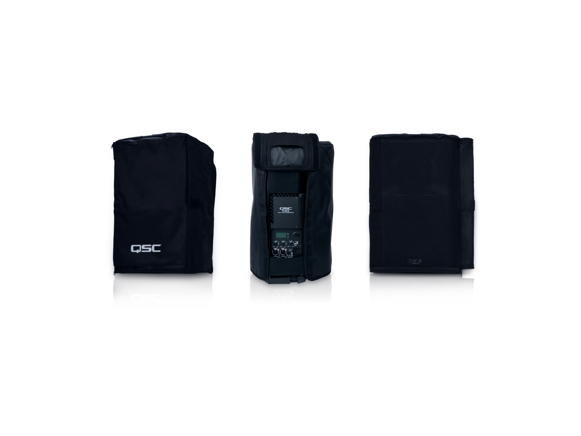 Nylon fabric and mesh cover for temporary outdoor use of K12.2 and legacy K12 in adverse weather. Removable amplifier panel allows access to connectors and controls. Vented panel maintains airflow for proper heat management. Not intended for permanent outdoor installations.