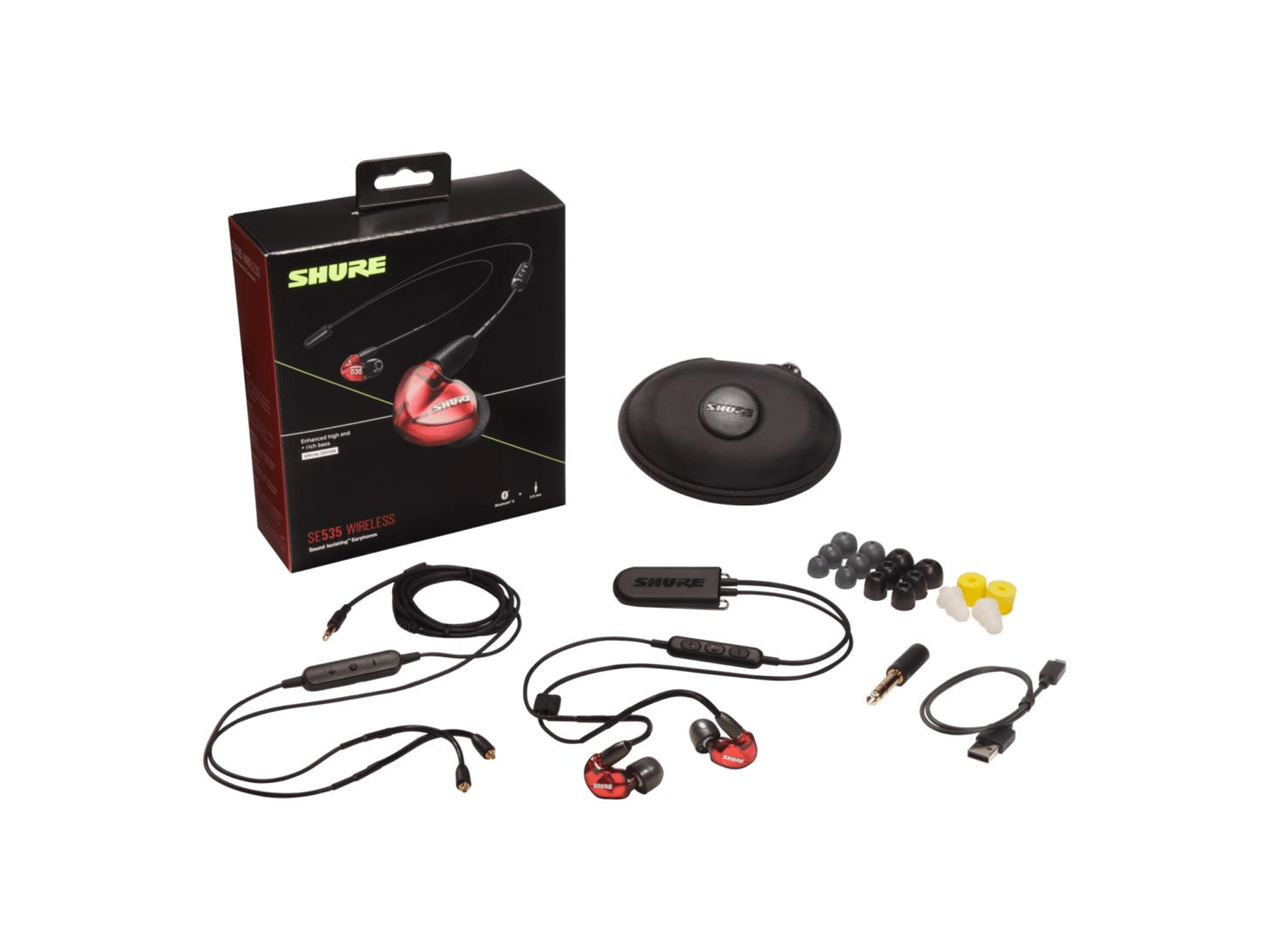 - Clear SE535 model incudes standard 3.5 mm clear cable, volume control, premium carrying case, ¼“ adapter, and fit kit with wide selection of sleeves for custom fit.